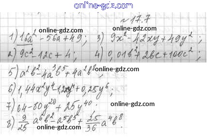 Готовые домашние задания по Алгебре за 7 класс Учебник Мерзляк, Поляков Алгоритм успеха Углубленный уровень 2019 - §17. Преобразование многочлена в квадрат суммы или разности двух выражений либо в квадрат суммы нескольких выражений 17.7
