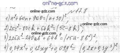 Готовые домашние задания по Алгебре за 7 класс Учебник Мерзляк, Поляков Алгоритм успеха Углубленный уровень 2019 - §17. Преобразование многочлена в квадрат суммы или разности двух выражений либо в квадрат суммы нескольких выражений 17.8
