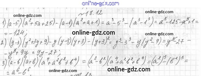 Готовые домашние задания по Алгебре за 7 класс Учебник Мерзляк, Поляков Алгоритм успеха Углубленный уровень 2019 - §18. Сумма и разность кубов двух выражений 18.12