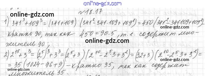 Готовые домашние задания по Алгебре за 7 класс Учебник Мерзляк, Поляков Алгоритм успеха Углубленный уровень 2019 - §18. Сумма и разность кубов двух выражений 18.17