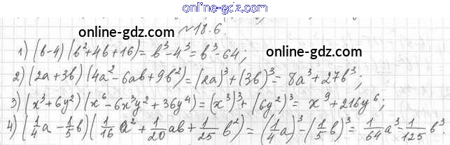 Готовые домашние задания по Алгебре за 7 класс Учебник Мерзляк, Поляков Алгоритм успеха Углубленный уровень 2019 - §18. Сумма и разность кубов двух выражений 18.6