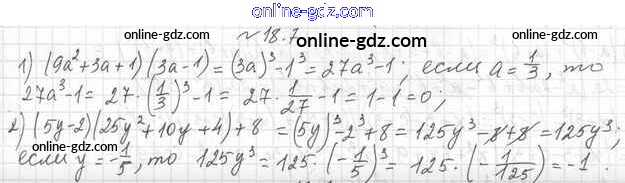Готовые домашние задания по Алгебре за 7 класс Учебник Мерзляк, Поляков Алгоритм успеха Углубленный уровень 2019 - §18. Сумма и разность кубов двух выражений 18.7