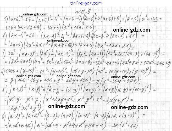 Готовые домашние задания по Алгебре за 7 класс Учебник Мерзляк, Поляков Алгоритм успеха Углубленный уровень 2019 - §18. Сумма и разность кубов двух выражений 18.9