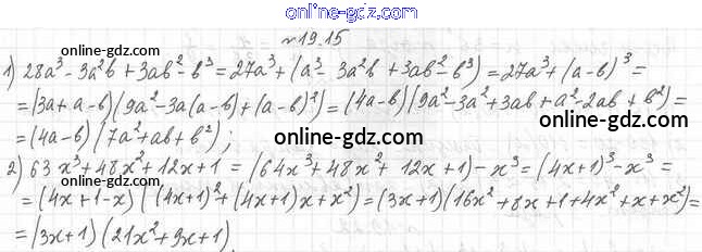 Готовые домашние задания по Алгебре за 7 класс Учебник Мерзляк, Поляков Алгоритм успеха Углубленный уровень 2019 - §19. Куб суммы и куб разности двух выражений 19.15