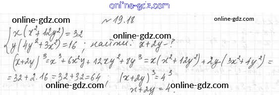 Готовые домашние задания по Алгебре за 7 класс Учебник Мерзляк, Поляков Алгоритм успеха Углубленный уровень 2019 - §19. Куб суммы и куб разности двух выражений 19.18