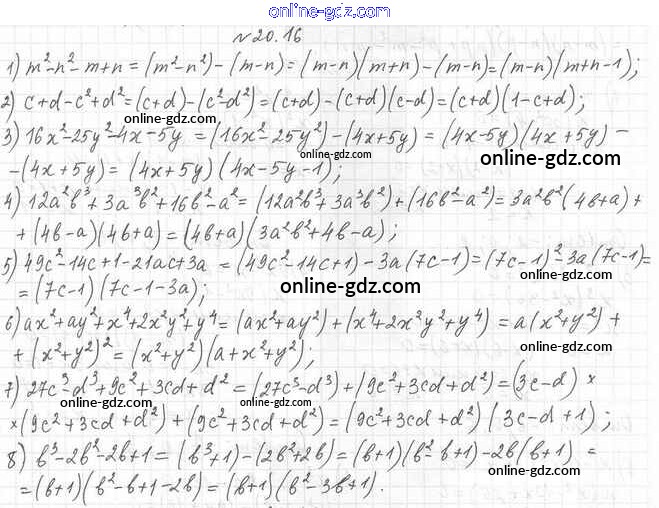 Готовые домашние задания по Алгебре за 7 класс Учебник Мерзляк, Поляков Алгоритм успеха Углубленный уровень 2019 - §20. Применение различных способов разложения многочлена на множители 20.16
