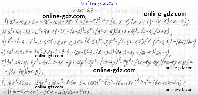 Готовые домашние задания по Алгебре за 7 класс Учебник Мерзляк, Поляков Алгоритм успеха Углубленный уровень 2019 - §20. Применение различных способов разложения многочлена на множители 20.27