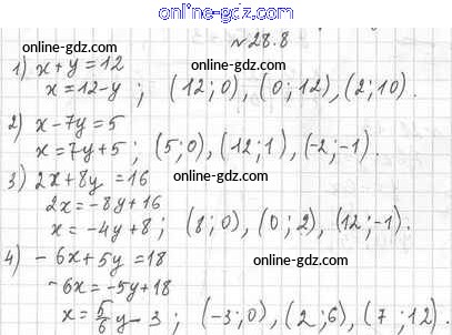 Готовые домашние задания по Алгебре за 7 класс Учебник Мерзляк, Поляков Алгоритм успеха Углубленный уровень 2019 - §28. Линейное уравнение с двумя переменными и его график 28.8