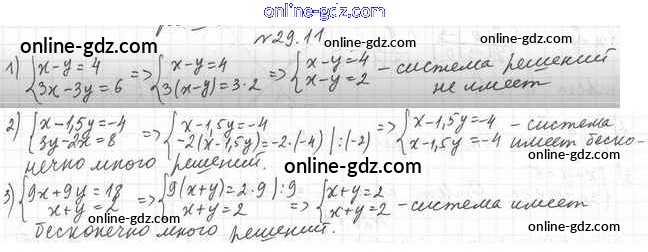 Готовые домашние задания по Алгебре за 7 класс Учебник Мерзляк, Поляков Алгоритм успеха Углубленный уровень 2019 - §29. Системы уравнений с двумя переменными. Графический метод решения системы двух линейных уравнений с двумя переменными 29.11