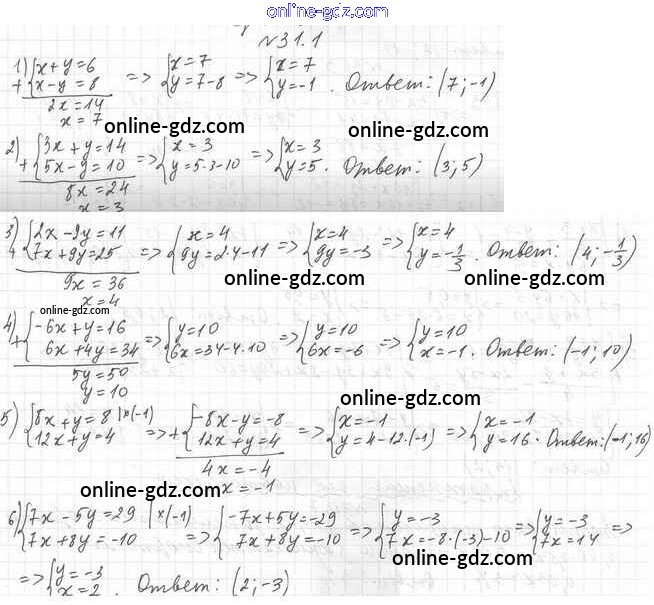 Готовые домашние задания по Алгебре за 7 класс Учебник Мерзляк, Поляков Алгоритм успеха Углубленный уровень 2019 - §31. Решение систем линейных уравнений методом сложения 31.1