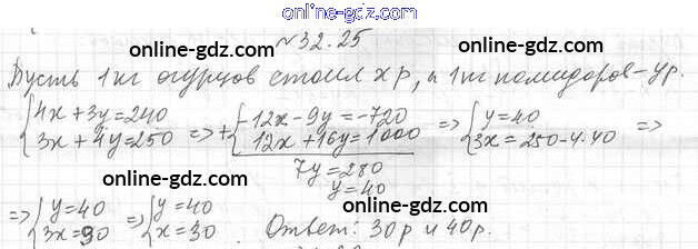 Готовые домашние задания по Алгебре за 7 класс Учебник Мерзляк, Поляков Алгоритм успеха Углубленный уровень 2019 - §32. Решение задач с помощью систем линейных уравнений 32.25