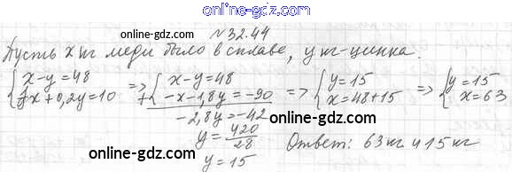 Готовые домашние задания по Алгебре за 7 класс Учебник Мерзляк, Поляков Алгоритм успеха Углубленный уровень 2019 - §32. Решение задач с помощью систем линейных уравнений 32.44