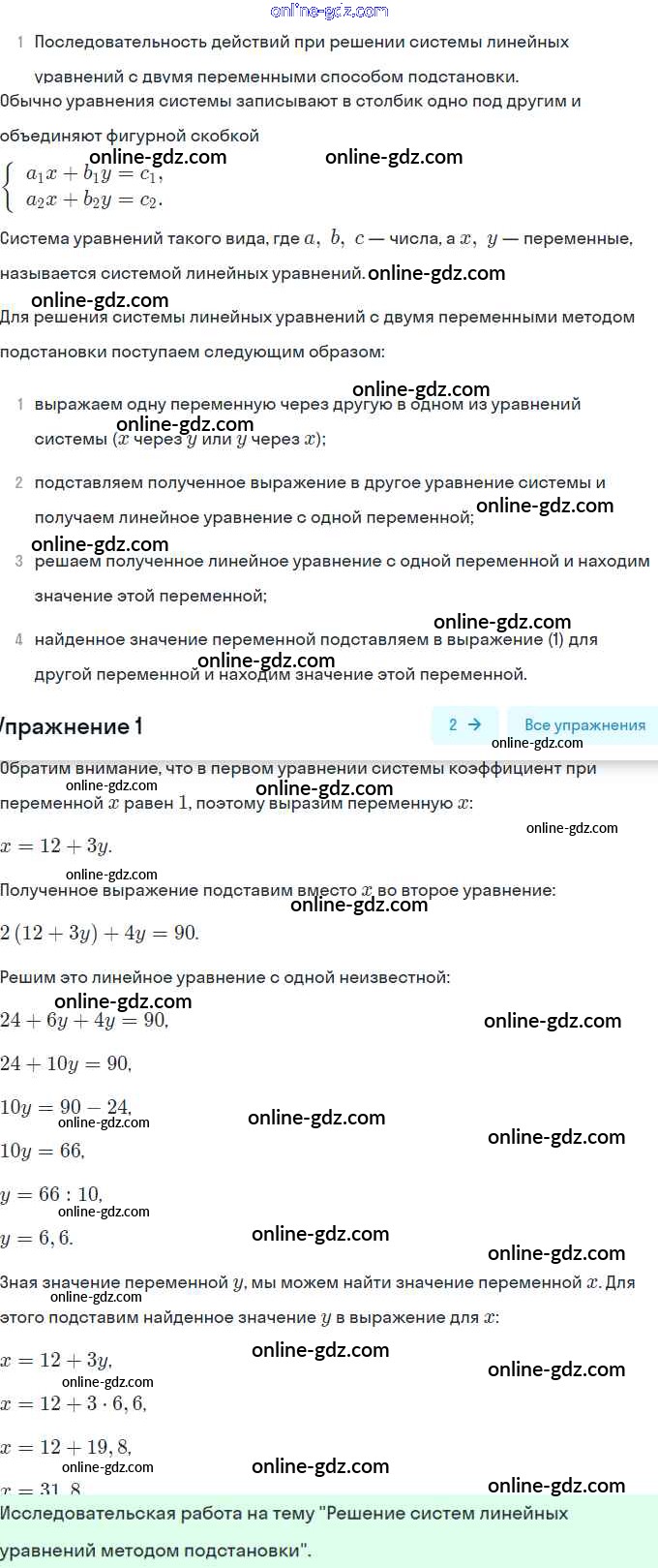 Готовые домашние задания по Алгебре за 7 класс Учебник Мордкович Базовый уровень 2013 - Темы исследовательских работ Глава 3. Системы двух линейных уравнений с двумя переменными 1