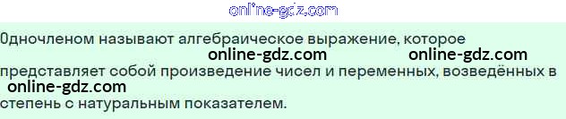 Готовые домашние задания по Алгебре за 7 класс Учебник Мордкович Базовый уровень 2013 - §20. Понятие одночлена. Стандартный вид одночлена Глава 5. Одночлены. Арифметические операции над одночленами 1