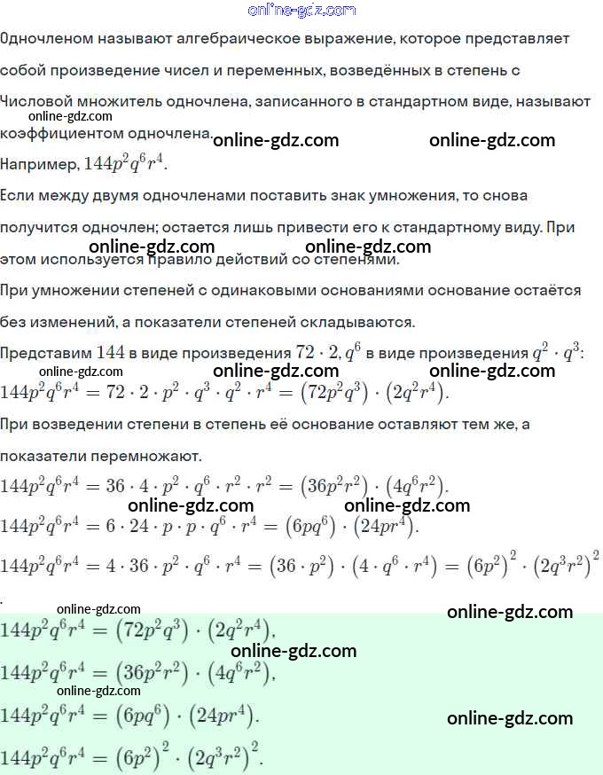 Готовые домашние задания по Алгебре за 7 класс Учебник Мордкович Базовый уровень 2013 - §22. Умножение одночленов. Возведение одночлена в натуральную степень Глава 5. Одночлены. Арифметические операции над одночленами 2