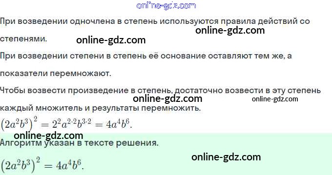 Готовые домашние задания по Алгебре за 7 класс Учебник Мордкович Базовый уровень 2013 - §22. Умножение одночленов. Возведение одночлена в натуральную степень Глава 5. Одночлены. Арифметические операции над одночленами 3