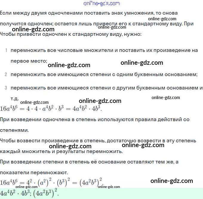 Готовые домашние задания по Алгебре за 7 класс Учебник Мордкович Базовый уровень 2013 - §22. Умножение одночленов. Возведение одночлена в натуральную степень Глава 5. Одночлены. Арифметические операции над одночленами 4