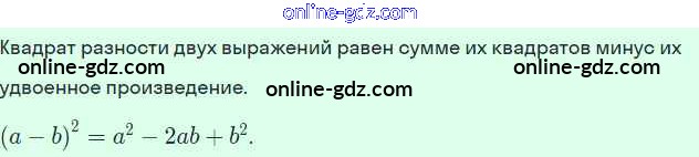 Готовые домашние задания по Алгебре за 7 класс Учебник Мордкович Базовый уровень 2013 - §28. Формулы сокращенного умножения Глава 6. Многочлены. Арифметические операции над многочленами 2