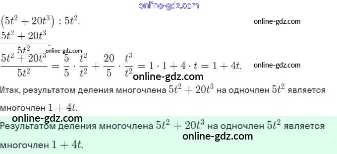 Готовые домашние задания по Алгебре за 7 класс Учебник Мордкович Базовый уровень 2013 - §29. Деление многочлена на одночлен Глава 6. Многочлены. Арифметические операции над многочленами 1