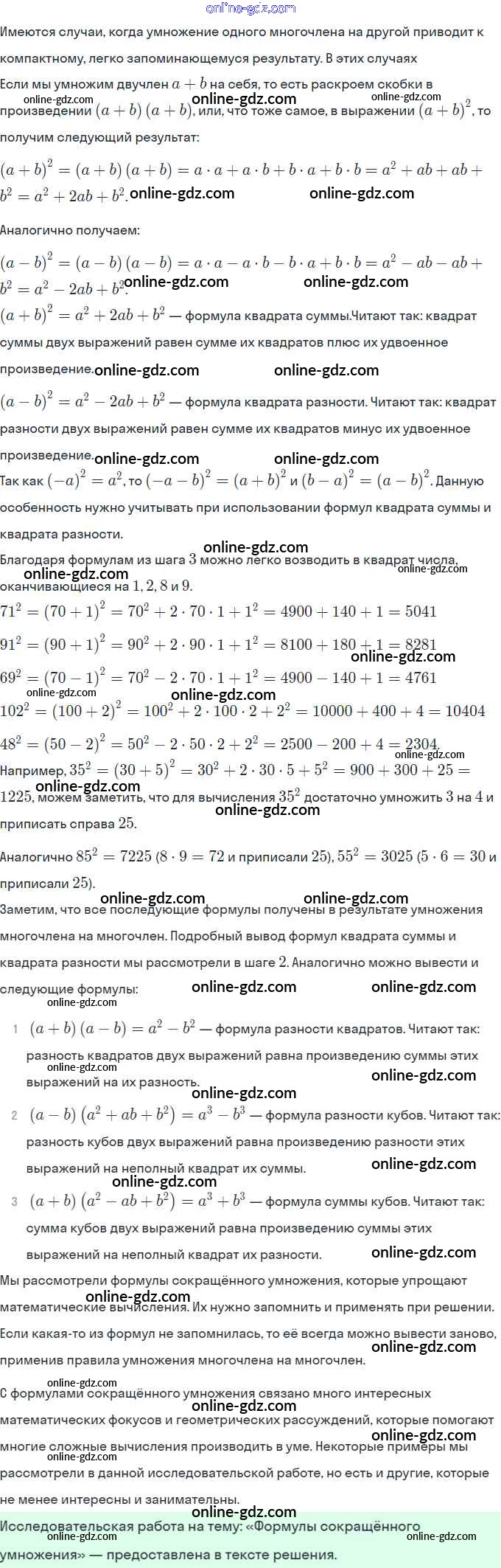 Готовые домашние задания по Алгебре за 7 класс Учебник Мордкович Базовый уровень 2013 - Темы исследовательских работ Глава 6. Многочлены. Арифметические операции над многочленами 1