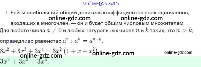 Готовые домашние задания по Алгебре за 7 класс Учебник Мордкович Базовый уровень 2013 - §31. Вынесение общего множителя за скобки Глава 7. Разложение многочленов на множители 3