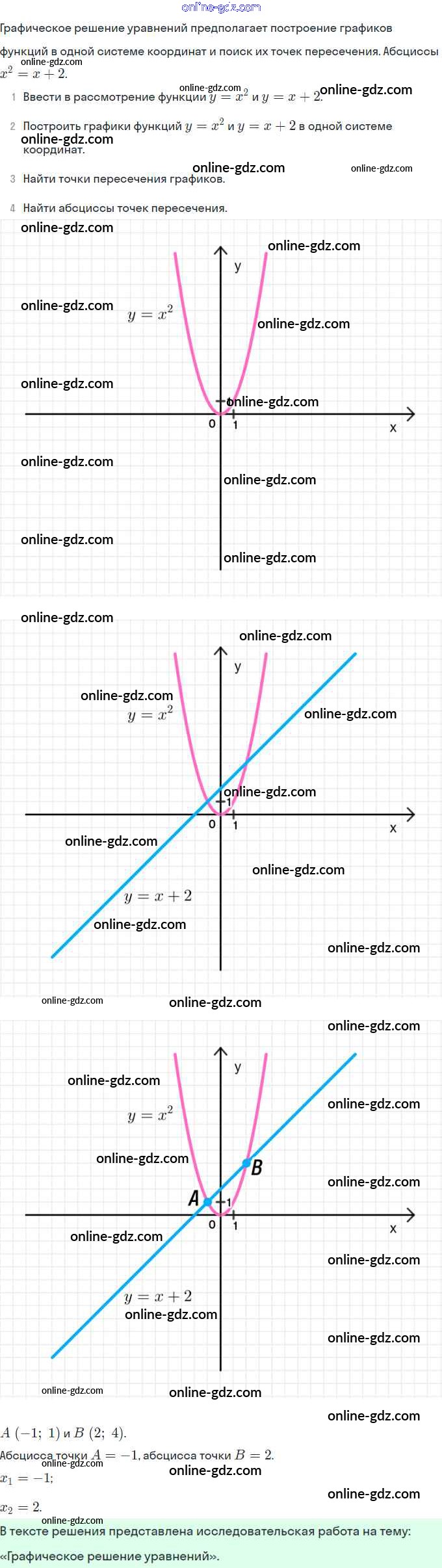 Готовые домашние задания по Алгебре за 7 класс Учебник Мордкович Базовый уровень 2013 - Темы исследовательских работ Глава 8. Функция y = x² 1