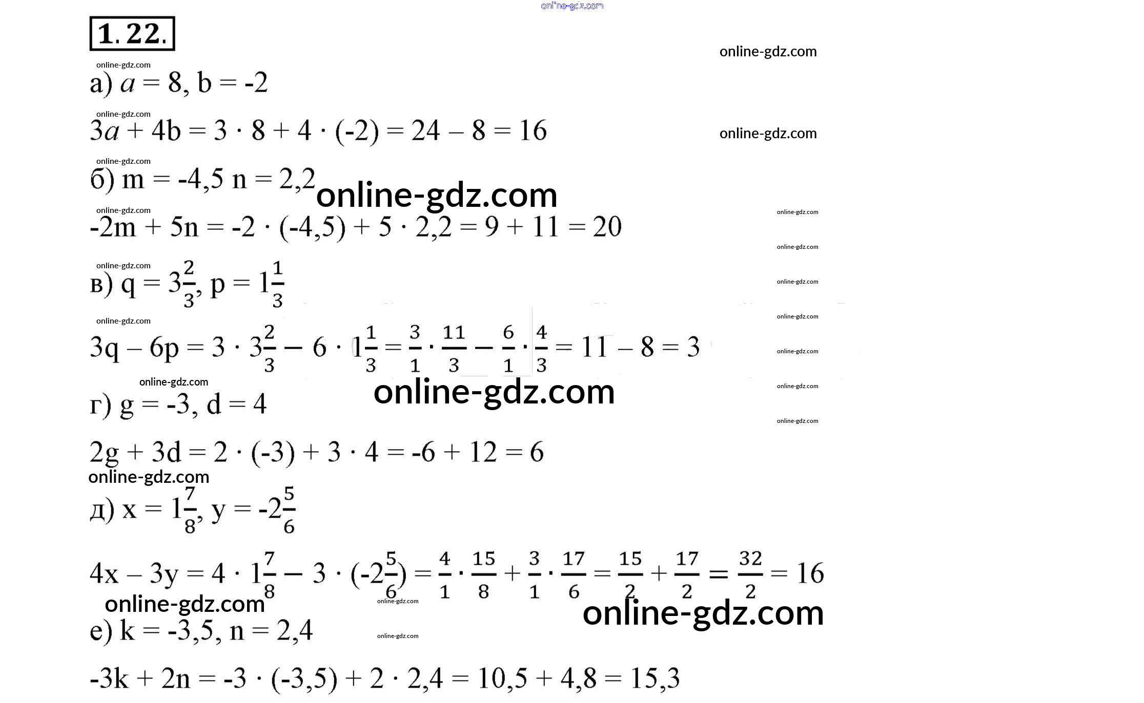 Готовые домашние задания по Алгебре за 7 класс Учебник Мордкович, Семёнов 2018 - §1. Числовые и алгебраические выражения 1.22