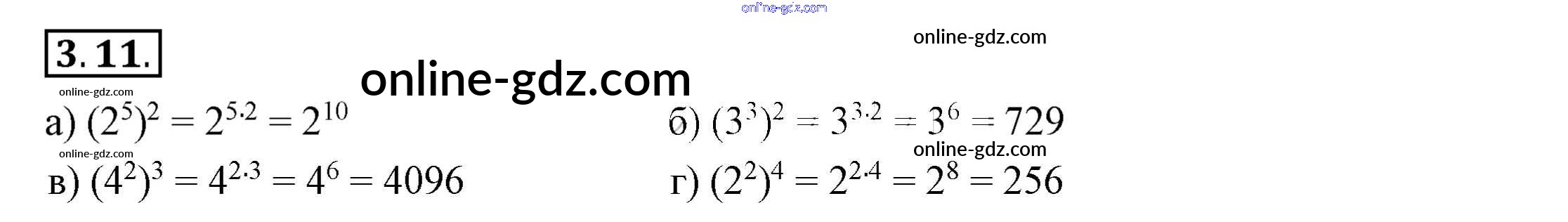 Готовые домашние задания по Алгебре за 7 класс Учебник Мордкович, Семёнов 2018 - §3. Свойства степеней с натуральными показателями 3.11