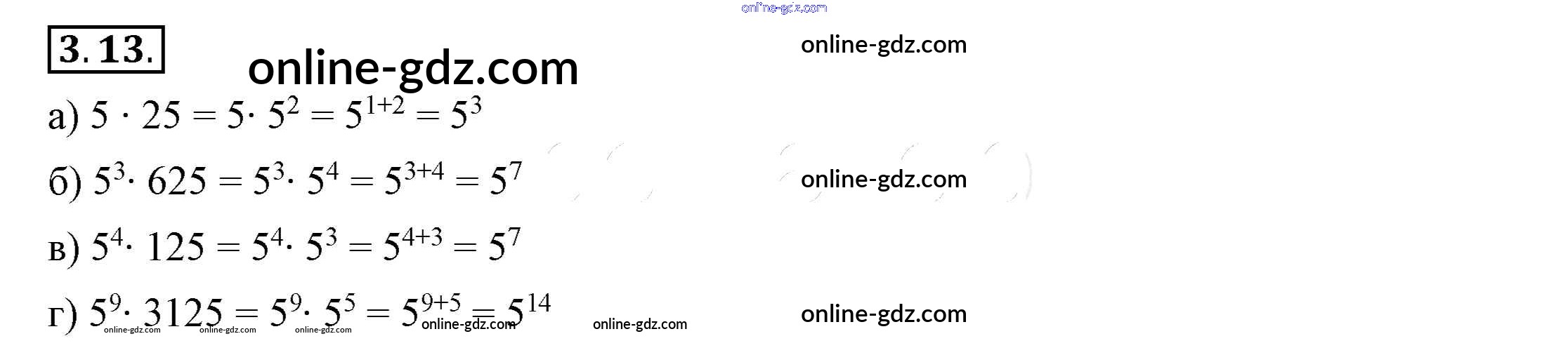 Готовые домашние задания по Алгебре за 7 класс Учебник Мордкович, Семёнов 2018 - §3. Свойства степеней с натуральными показателями 3.13