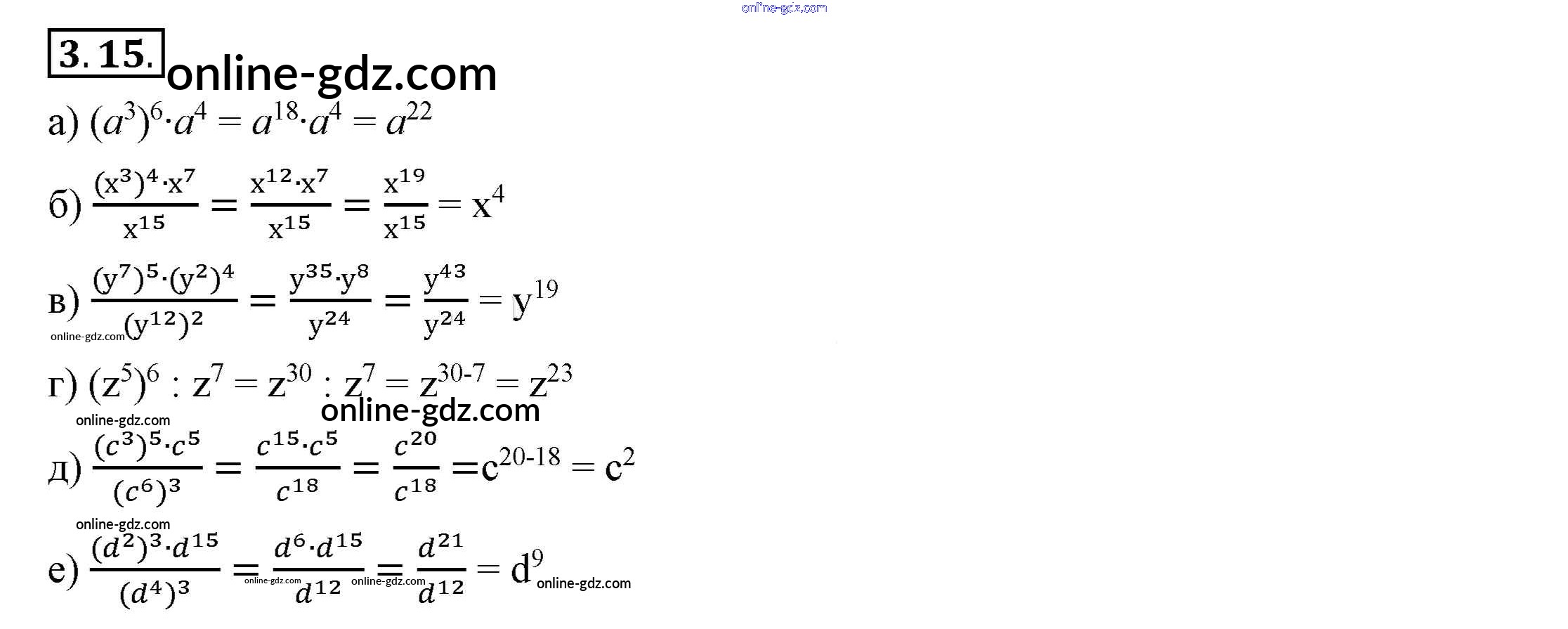 Готовые домашние задания по Алгебре за 7 класс Учебник Мордкович, Семёнов 2018 - §3. Свойства степеней с натуральными показателями 3.15