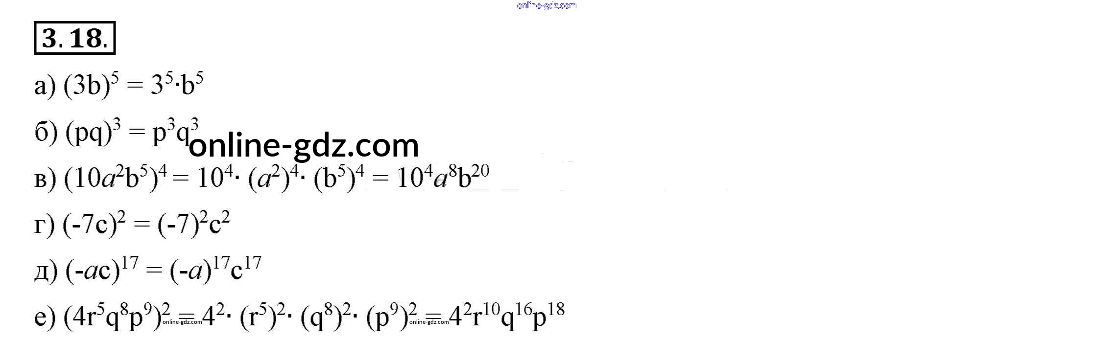 Готовые домашние задания по Алгебре за 7 класс Учебник Мордкович, Семёнов 2018 - §3. Свойства степеней с натуральными показателями 3.18