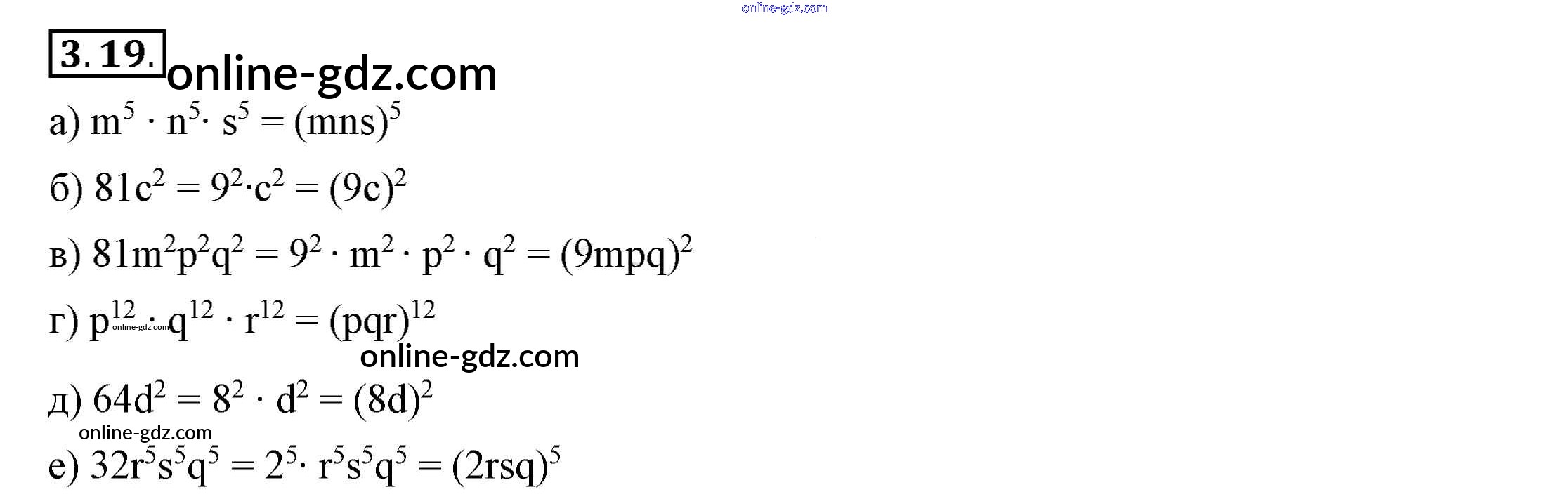 Готовые домашние задания по Алгебре за 7 класс Учебник Мордкович, Семёнов 2018 - §3. Свойства степеней с натуральными показателями 3.19