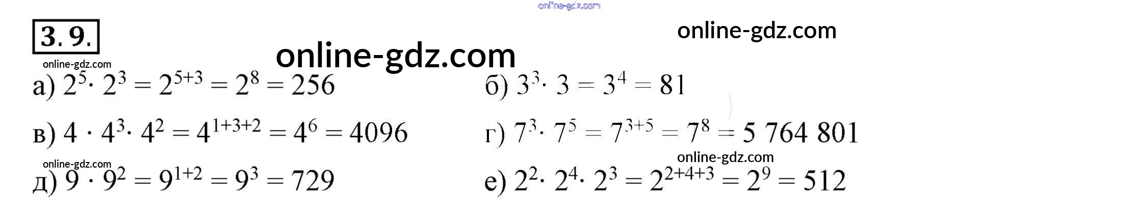 Готовые домашние задания по Алгебре за 7 класс Учебник Мордкович, Семёнов 2018 - §3. Свойства степеней с натуральными показателями 3.9