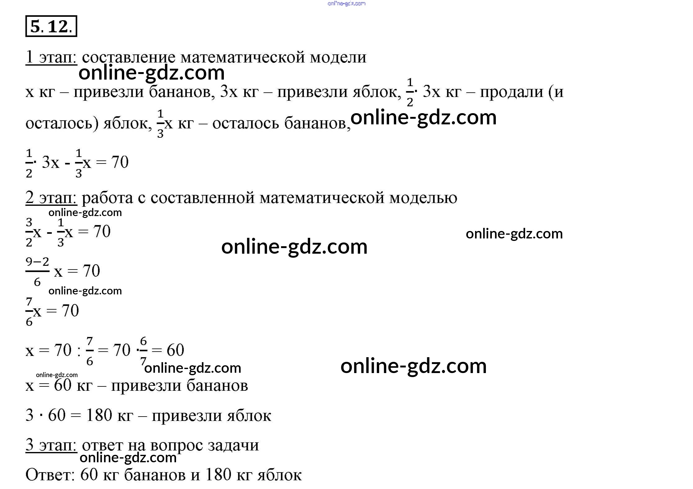 Готовые домашние задания по Алгебре за 7 класс Учебник Мордкович, Семёнов 2018 - §5. Линейные уравнения с одной переменной 5.12
