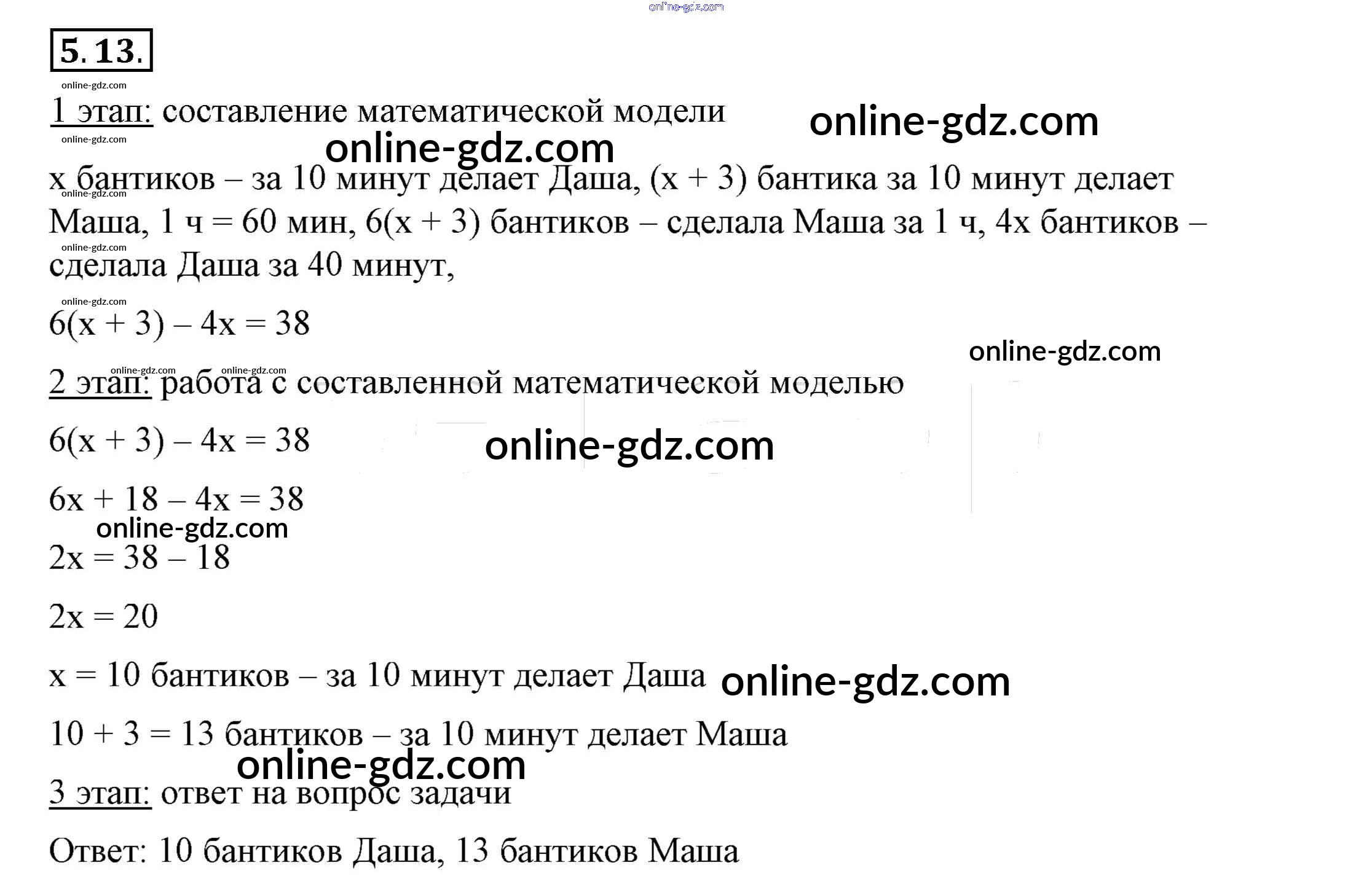 Готовые домашние задания по Алгебре за 7 класс Учебник Мордкович, Семёнов 2018 - §5. Линейные уравнения с одной переменной 5.13