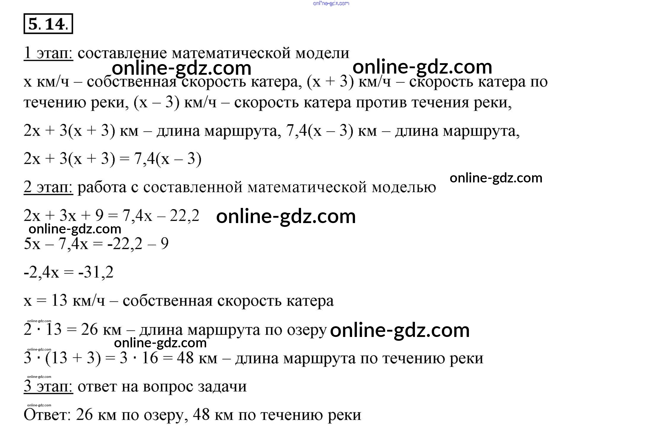 Готовые домашние задания по Алгебре за 7 класс Учебник Мордкович, Семёнов 2018 - §5. Линейные уравнения с одной переменной 5.14