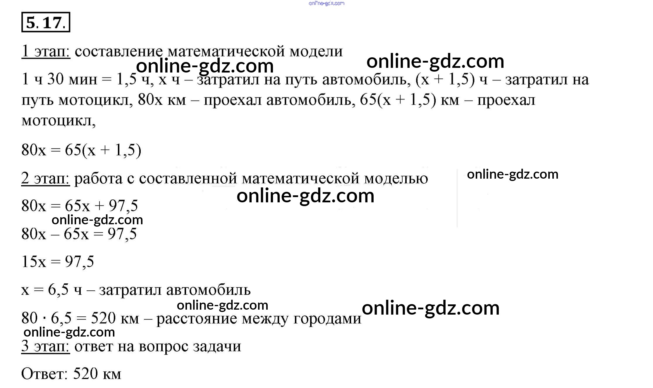 Готовые домашние задания по Алгебре за 7 класс Учебник Мордкович, Семёнов 2018 - §5. Линейные уравнения с одной переменной 5.17