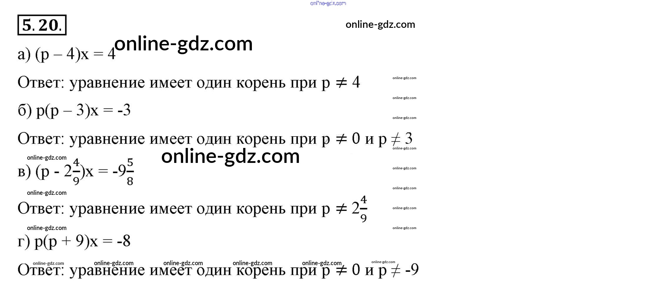 Готовые домашние задания по Алгебре за 7 класс Учебник Мордкович, Семёнов 2018 - §5. Линейные уравнения с одной переменной 5.20