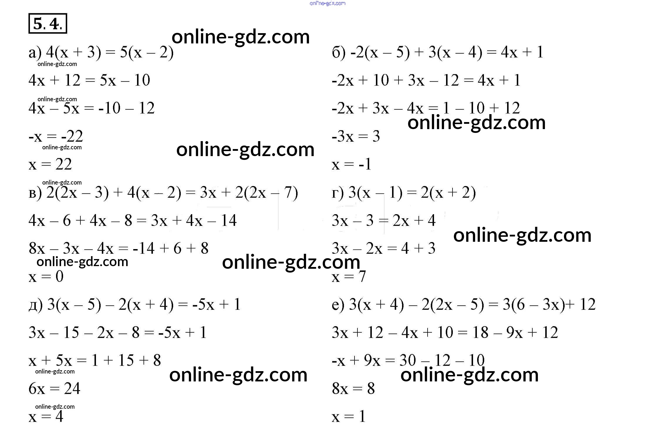 Готовые домашние задания по Алгебре за 7 класс Учебник Мордкович, Семёнов 2018 - §5. Линейные уравнения с одной переменной 5.4