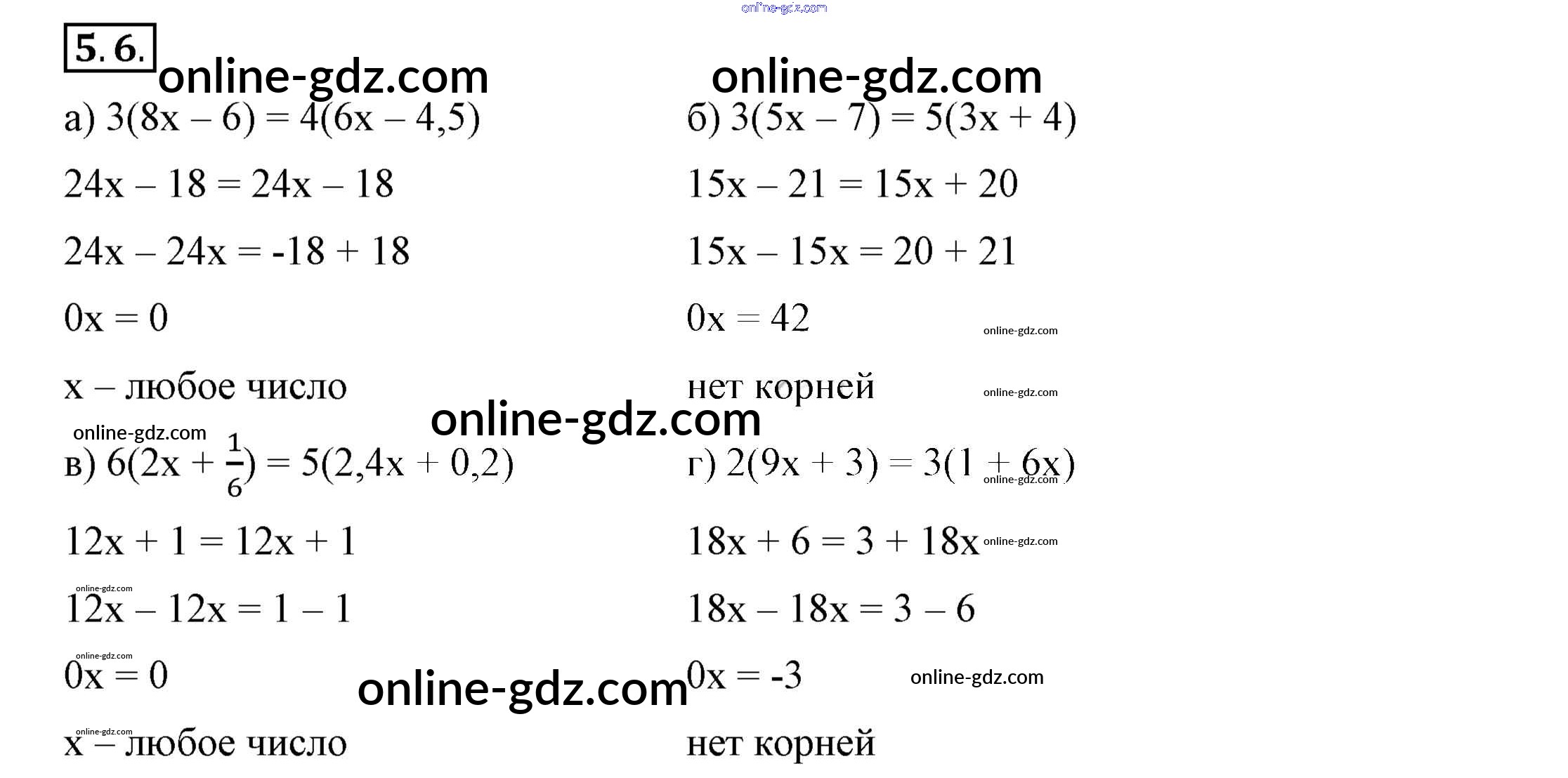 Готовые домашние задания по Алгебре за 7 класс Учебник Мордкович, Семёнов 2018 - §5. Линейные уравнения с одной переменной 5.6