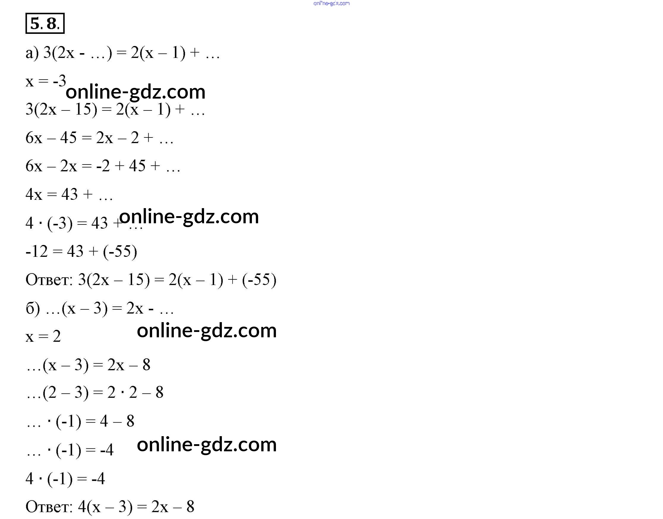 Готовые домашние задания по Алгебре за 7 класс Учебник Мордкович, Семёнов 2018 - §5. Линейные уравнения с одной переменной 5.8