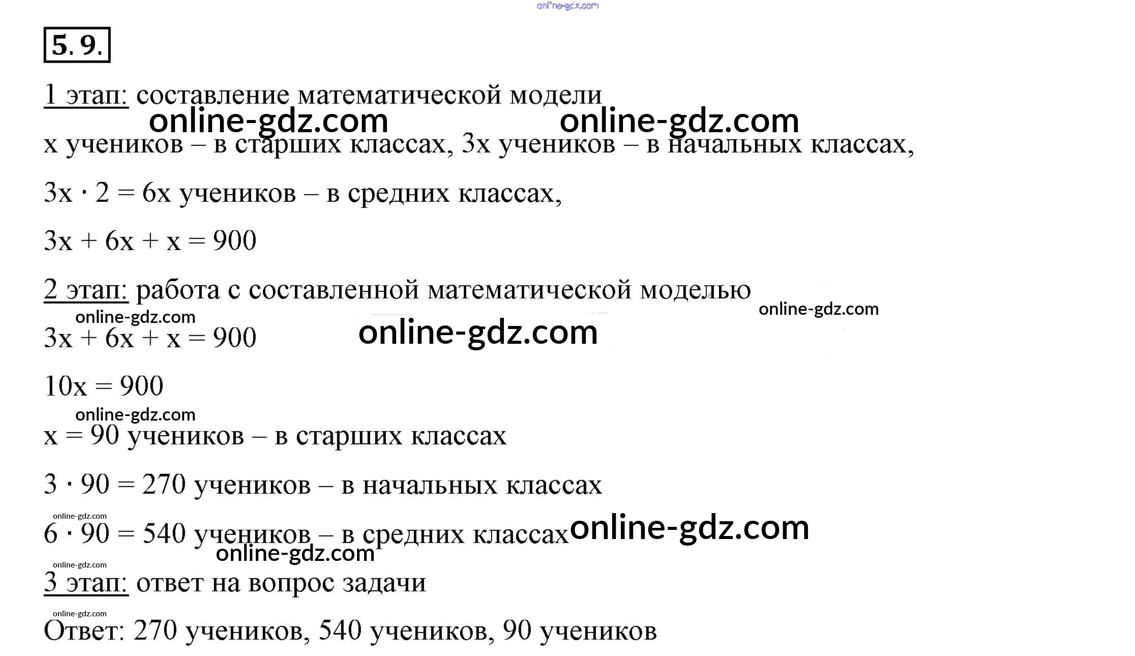 Готовые домашние задания по Алгебре за 7 класс Учебник Мордкович, Семёнов 2018 - §5. Линейные уравнения с одной переменной 5.9