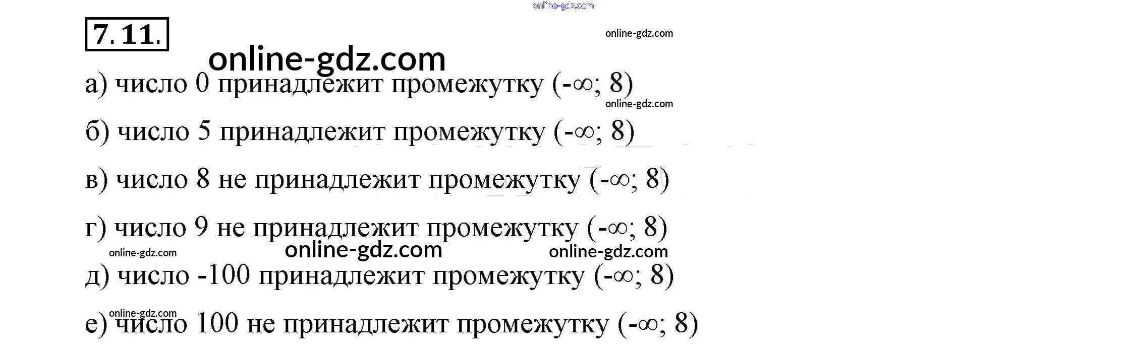 Готовые домашние задания по Алгебре за 7 класс Учебник Мордкович, Семёнов 2018 - §7. Числовые промежутки на координатной прямой 7.11