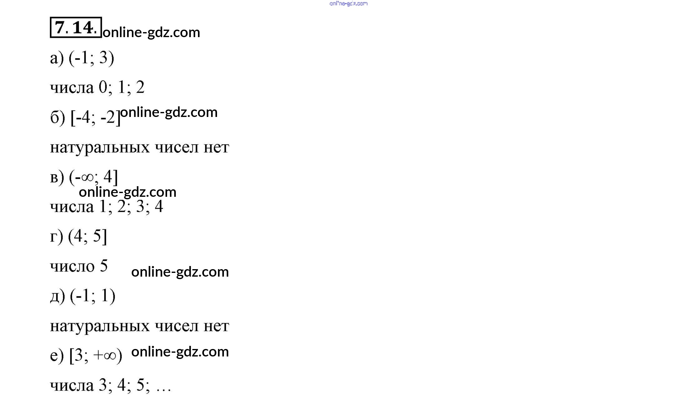 Готовые домашние задания по Алгебре за 7 класс Учебник Мордкович, Семёнов 2018 - §7. Числовые промежутки на координатной прямой 7.14