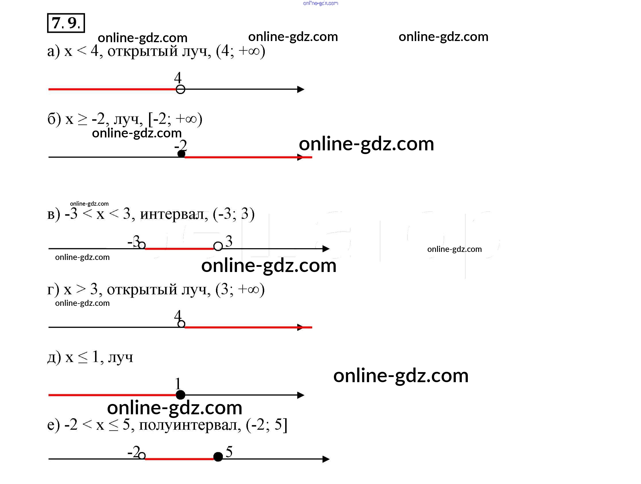 Готовые домашние задания по Алгебре за 7 класс Учебник Мордкович, Семёнов 2018 - §7. Числовые промежутки на координатной прямой 7.9