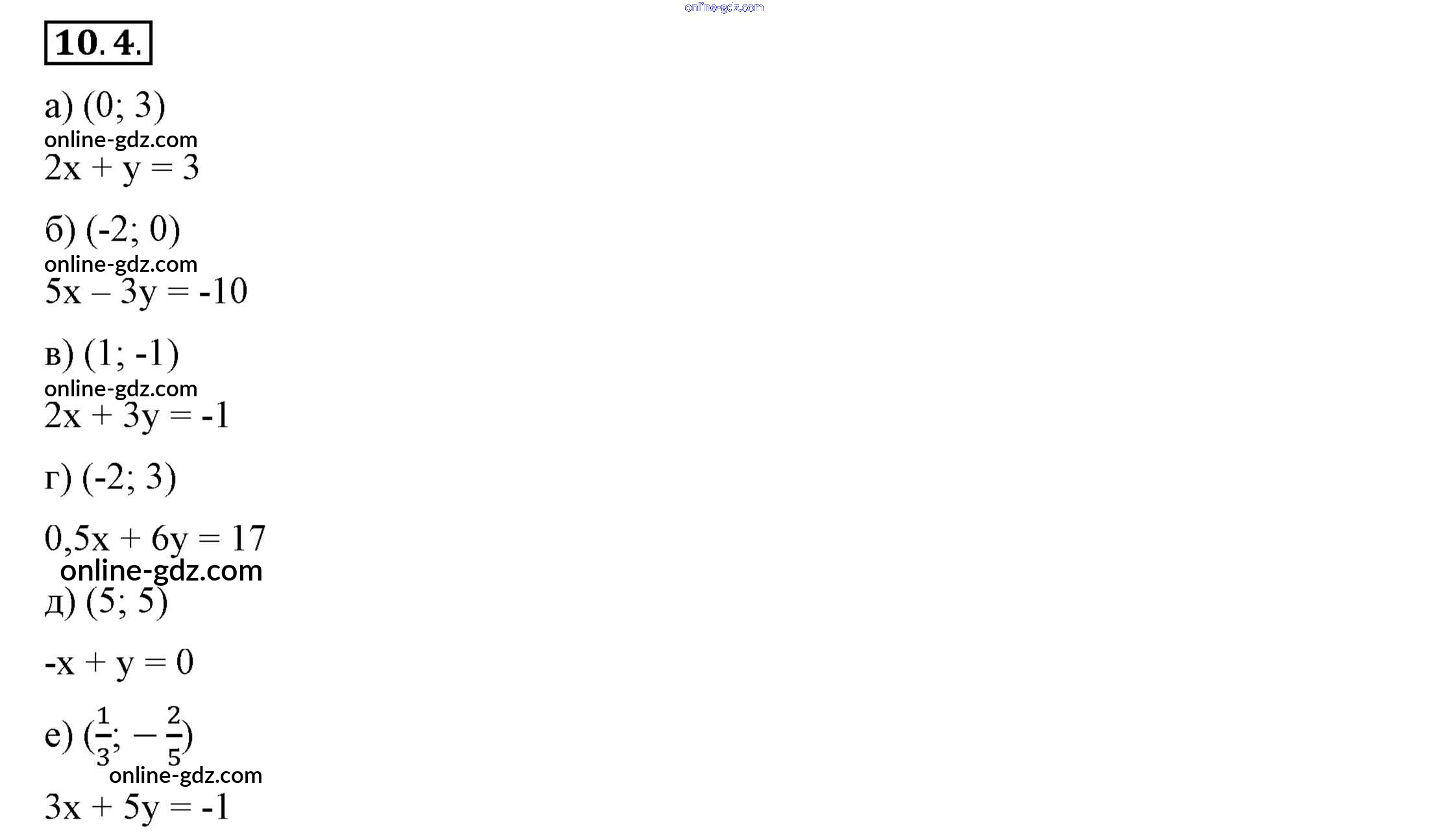 Готовые домашние задания по Алгебре за 7 класс Учебник Мордкович, Семёнов 2018 - §10. Линейные уравнения с двумя переменными 10.4