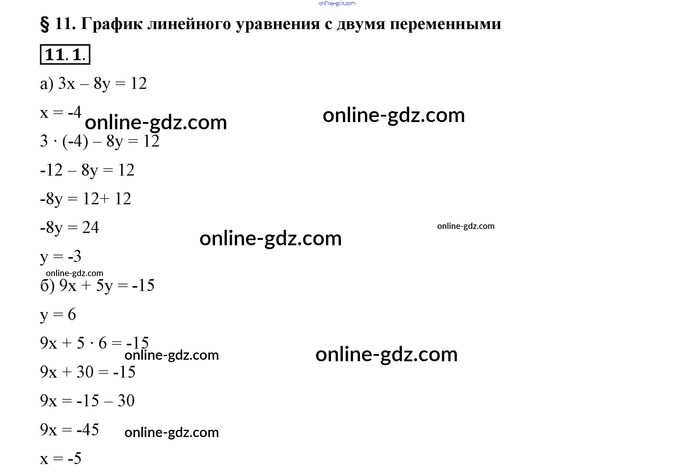 Готовые домашние задания по Алгебре за 7 класс Учебник Мордкович, Семёнов 2018 - §11. График линейного уравнения с двумя переменными 11.1