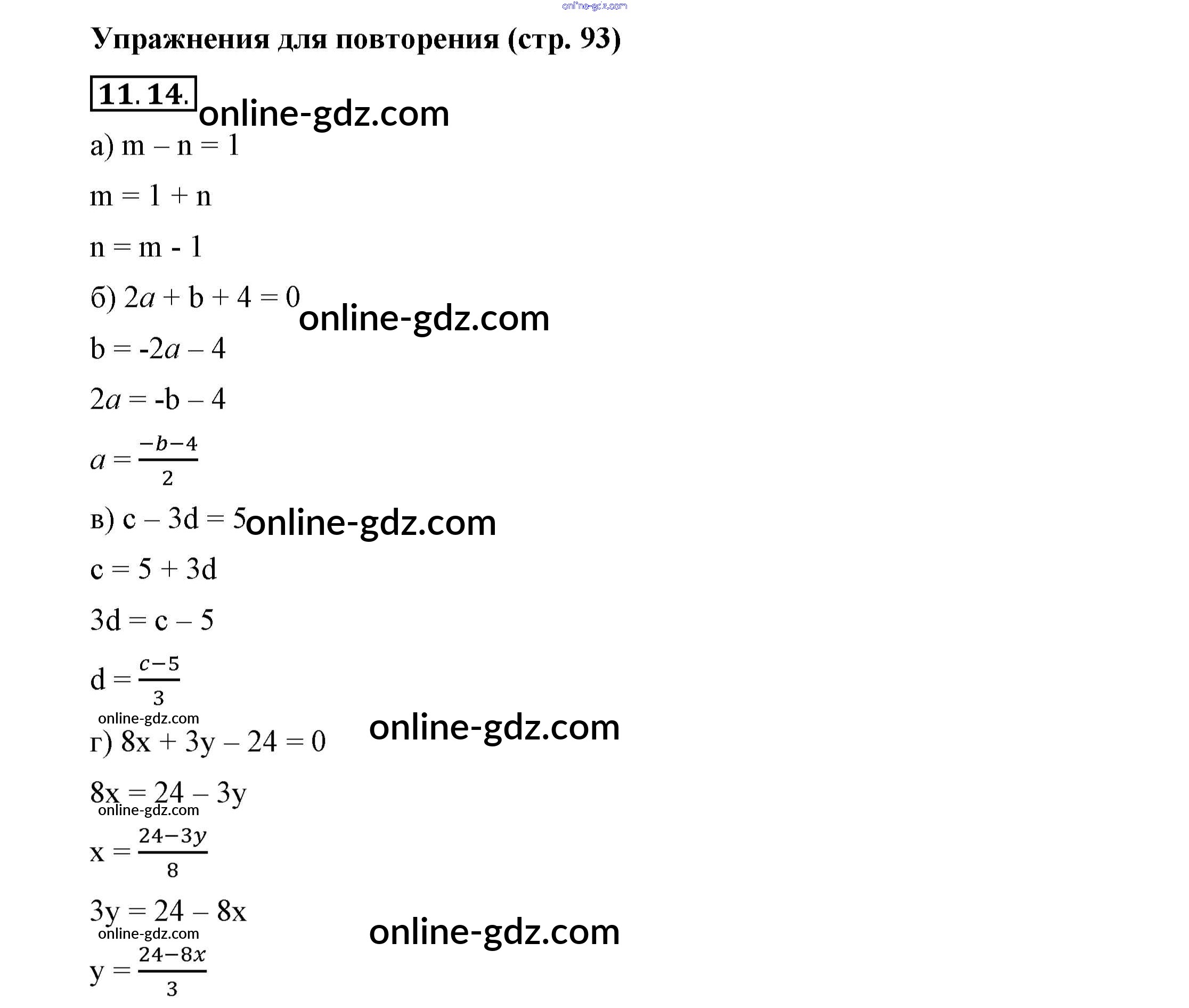 Готовые домашние задания по Алгебре за 7 класс Учебник Мордкович, Семёнов 2018 - §11. График линейного уравнения с двумя переменными 11.14
