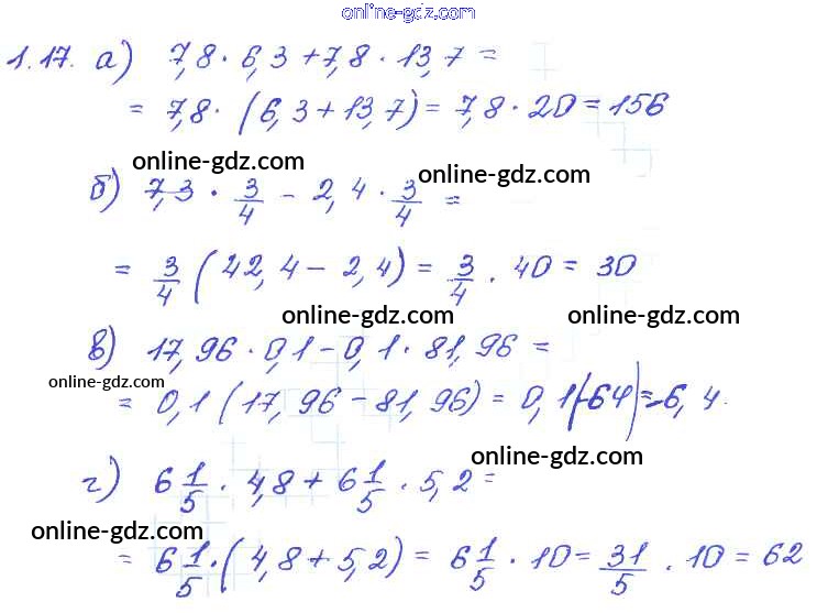 Готовые домашние задания по Алгебре за 7 класс Задачник Мордкович, Александрова Базовый уровень 2013 - § 1. Числовые и алгебраические выражения Глава 1 17