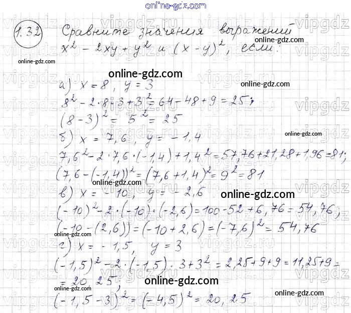 Готовые домашние задания по Алгебре за 7 класс Задачник Мордкович, Александрова Базовый уровень 2013 - § 1. Числовые и алгебраические выражения Глава 1 32